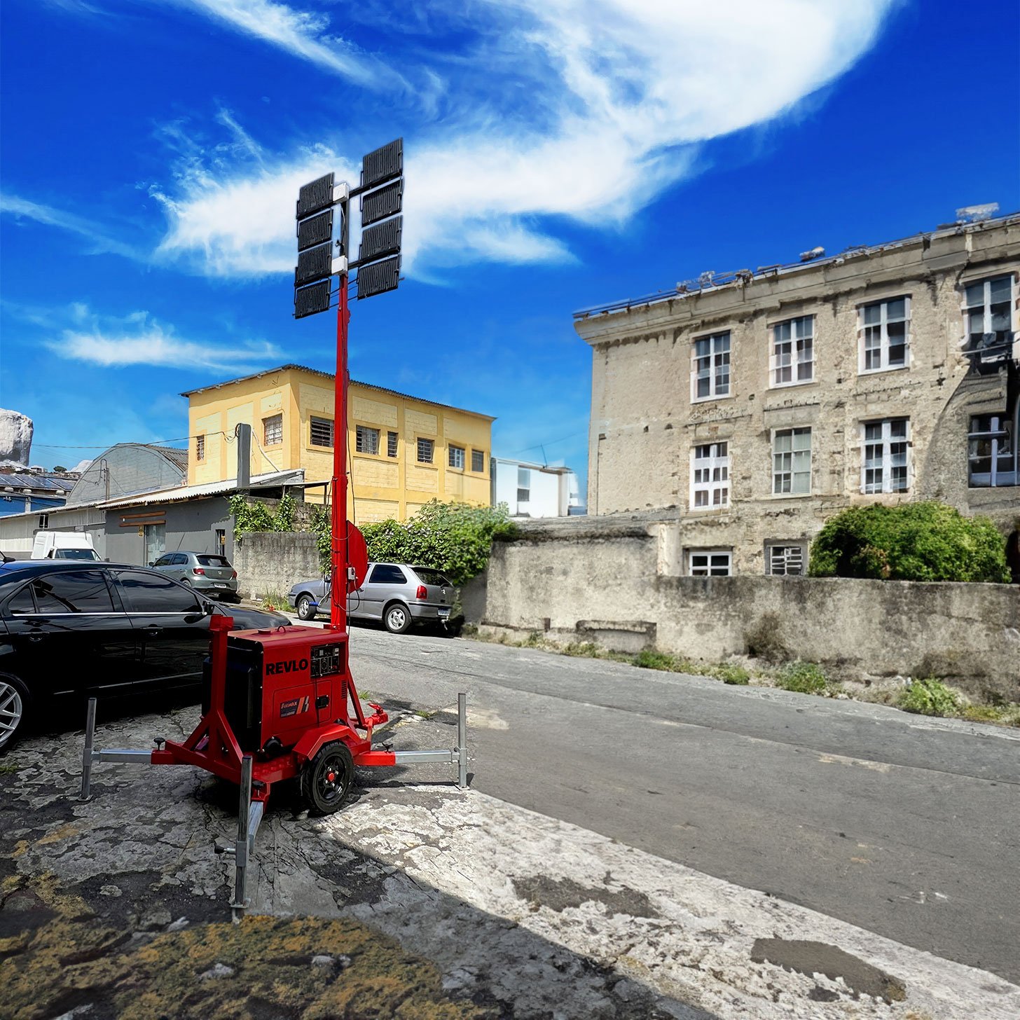A torre de iluminação móvel é muito versátil. Ela serve para construção civil, eventos ao ar livre e emergências. É fácil de mover e mudar de lugar, o que ajuda muito.